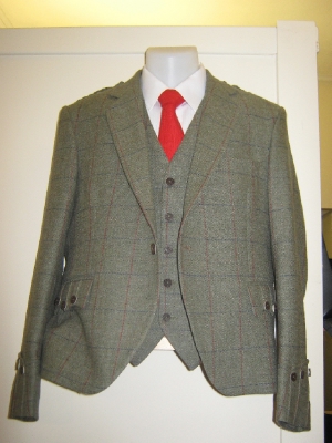 > Tweeds: Moss or Lovat green/ charcoal tweed Jackets / waistcoat