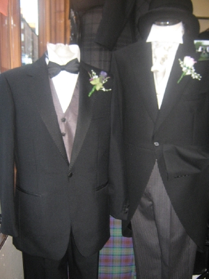 Along with kilt outfits we also offer a selection of suiting options including tuxedos (plus all accessories) available for hire.