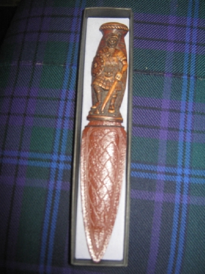 A traditional kilt accessory, this small, single-edged knife is worn tucked into the sock/ kilt hose. The 'day' sgian dubh is finished in brown which pairs excellently with some tweed jackets and semi-formal kilt outfits.